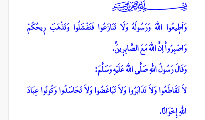 Okuduğum ayet-i kerimede Yüce Rabbimiz şöyle buyuruyor: “Allah’a ve Resûlüne itaat edin ve birbirinizle çekişmeyin. Sonra gevşersiniz ve gücünüz elden gider. Sabırlı olun. Çünkü Allah sabredenlerle beraberdir.”[1]