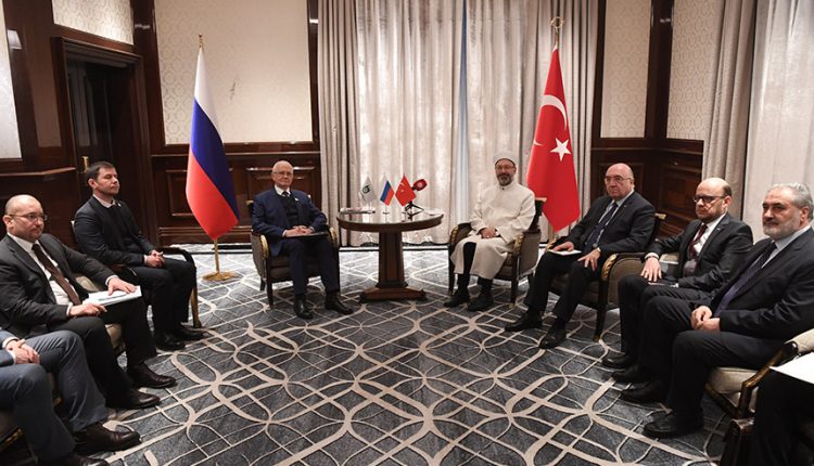 Görüşmede, Türkiye’nin Moskova Büyükelçisi Mehmet Samsar, Moskova Büyükelçiliği Din Hizmetleri Müşaviri Ömer Faruk Savuran ile Diyanet İşleri Başkanlığı Din İşleri Yüksek Kurulu Üyesi Mustafa Irmaklı da hazır bulundu.