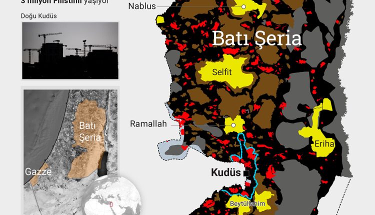Oslo Anlaşmaları uyarınca filizlenmekte olan Filistin özerkliği, teorik olarak Batı Şeria’nın yalnızca yüzde 18’ini (A Bölgesi) kontrol ediyor. Diğer yüzde 22’si (B Bölgesi) ortak Filistin-İsrail yönetiminde. Geri kalan yüzde 60 (C Bölgesi) ise tamamen İsrail’in kontrolünde. Aşağıdaki haritada görülebileceği üzere, bu durum hiçbir zaman uygulanabilir bir Filistin özyönetimine yol açamayacak, parçalı ve küçücük bir özerklik alanı doğurdu.