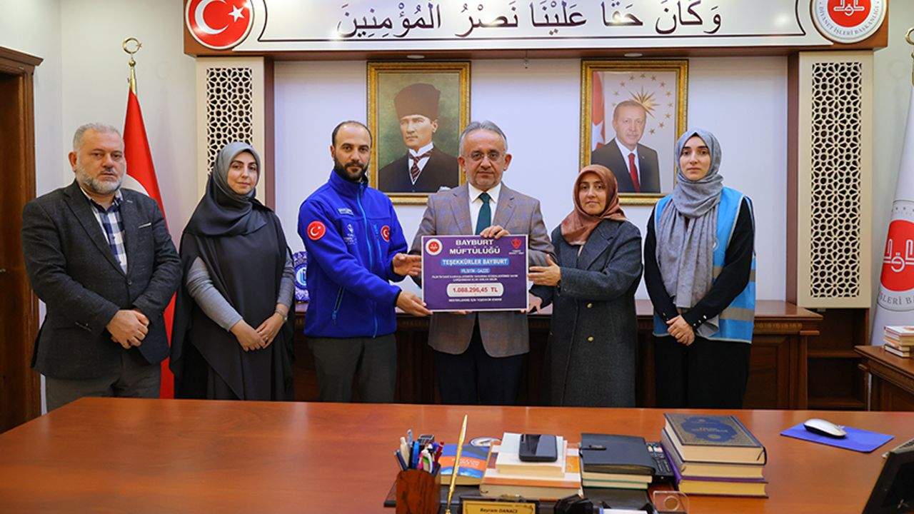 Toplanan yardımlar, Gazze’ye ulaştırılmak üzere İl Müftüsü Bayram Danacı’nın eşi Aslı Danacı, Müftü yardımcıları Nurettin Akgül, İlim Tatlı, TDV Şube İşlemleri Uzman Yardımcısı Mikail Demirhan ve TDV Bayburt Kadın Kolları Başkanı Fatmanur Güçlüer tarafından İl Müftüsü ve TDV Bayburt Şubesi Başkanı Bayram Danacı’ya teslim edildi.