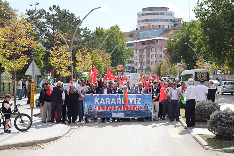 “Bu tablo karşısında, insanlık ayağa kalkmış, soykırım ve ablukanın sona ermesi için küresel vicdan harekete geçmiştir. Umudun yanına kararlılığı ekleyen binlerce aktivist, Sumud Filosu’na katılmak için gönüllü olmuştur. Yaşanan soykırım karşısında her birimizin önemli bireysel sorumluluklarının başında, İsrail’e destek olan firmaları boykot gelmektedir. Ayaklarındaki Kudüs gücüyle adımlarını atan vicdan sahibi Erzincanlılar olarak bu inançla bugün bu meydanı doldurduk. İnanıyoruz ki asırlarca her dinden insanın inancını özgürce yaşadığı barış ve esenlik yurdu Kudüs tekrar o eski ihtişamlı günlerine kavuşacaktır. İnanıyoruz ki soykırımcı İsrail hesap verecek, her karışı şehit kanıyla sulanan Filistin özgürlüğüne kavuşacaktır. İnanıyoruz ki dünyayı sarmalayan Siyonist çetenin hegemonyasının son bulacağı gün dünya yeniden yaşanabilir olacaktır.”