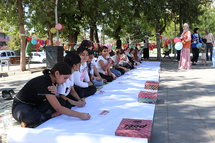 İHH İnsani Yardım Vakfı Şanlıurfa Şubesi organizasyonunda Rabia Meydanı’nda bir araya gelen çocuklar, “Filistin için Çiz” etkinliğinde buluştu.