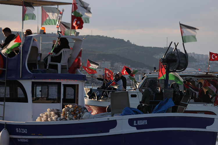 Öte yandan, Mersin’deki “Gazze Kararlılık Yürüyüşü” etkinliğine destek olmak amacıyla Erdemli Balıkçı Barınağı’ndaki 20 tekne denize açıldı.