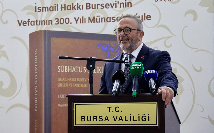 Mumcu, İsmail Hakkı Bursevi’nin 17-18. yüzyılda ilim, irfan ve edebiyat dünyasının şüphesiz en mümtaz simalarından biri olduğunu belirterek, Bursa’da uzun yıllar süren irşat ve tebliğ faaliyetleriyle hem zahiri ilimler hem de batıni derinliklerle yetiştirdiği öğrencilerle Anadolu’nun kültürel ve manevi iklimine yön verdiğini anlattı.