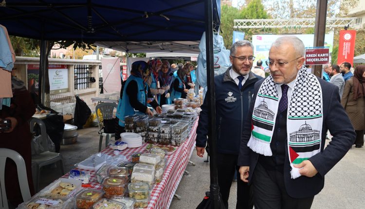 Kermeste stantları tek tek ziyaret eden İl Müftüsü Abdullah Pamuklu, Gazze’deki zulme dikkat çekerek bölge için toplu dua etti.