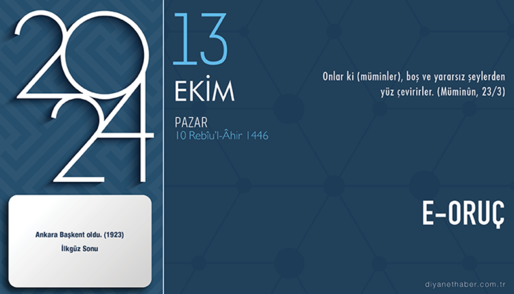E-oruç Son yıllarda elektronik medya başlığı altında internet ve cep telefonu gibi iletişim alanındaki teknolojiler günlük hayatımızı yoğun olarak etkilemekte ve sosyal ilişkilerimizi derinden şekillendirmektedir. 2017 yılında yapılan bir araştırmaya göre Türkiye nüfusunun %60’ı zamanının her gün ortalama 3 saatten fazlasını sosyal medyada geçirmektedir. Bunların %87’si sosyal medya dışında internette 3 saat 45 dakika kalmaktadır. Bu rakamlar bize ülke nüfusumuzun neredeyse yarısının gününün yaklaşık üçte birini internette geçirdiğini göstermektedir. Söz konusu zamanın genelde önemsiz kişilerin önemsiz işlerine bakarak geçtiği düşünüldüğünde bu hususun üzerinde düşünülmesi ve tavır alınması gereken bir durum olduğu görülecektir. Bu tavır alma usullerinden biri olan e-oruç, internet kullanımı ve sosyal medya ağlarından uzak durmak anlamına gelmektedir. E-oruçla birlikte öncelikle kendimize interneti ne kadar kullanmaya ihtiyacım var sorusunu sormalı, gereksiz kullanımdan kaçınmalıyız. — “Ankara Başkent oldu. (1923) İlkgüz Sonu” Kaynak