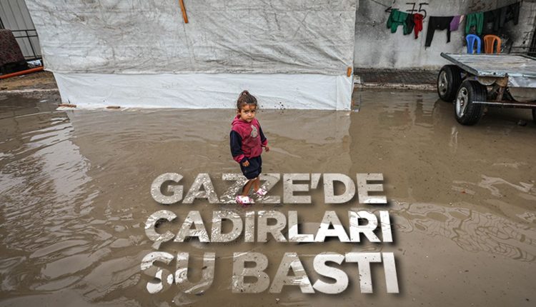Gazze’de yoğun yağış nedeniyle işgalci saldırılarında evleri yıkılanların kaldığı çadırları su bastı