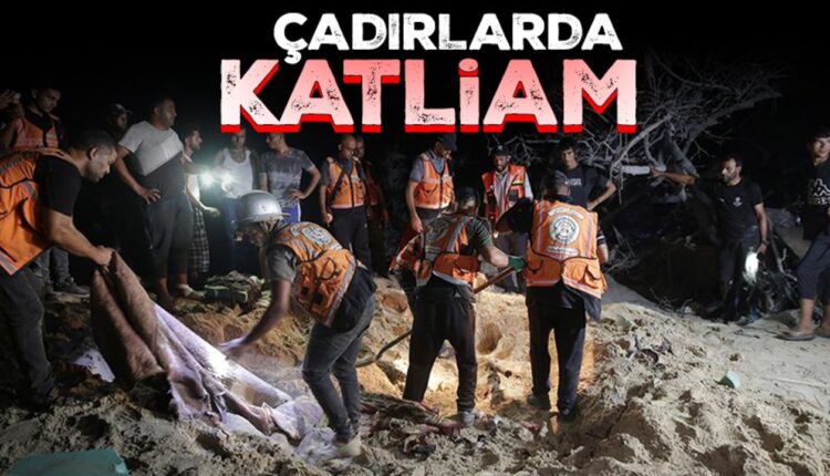 Katil İsrail güçlerinin, Gazze’de yerinden edilenlerin çadırlarına düzenlediği saldırıda en az 40 kişi şehit oldu