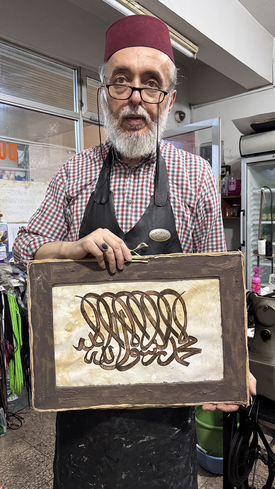 Hastalığına rağmen işini bırakmayarak müşterilerinin taleplerini karşılamaya gayret gösteren Sevim, dükkanda boş kaldığı zamanlarda hat yazımını sürdürüyor.