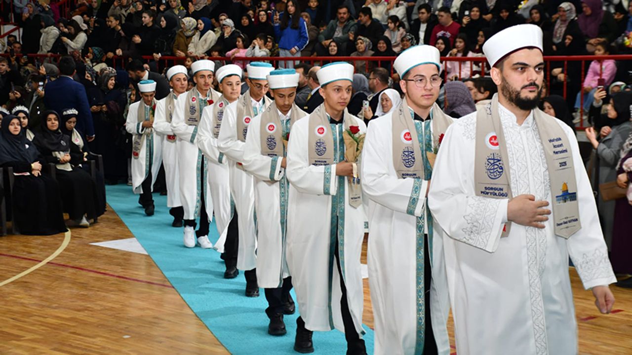 Sorgun Müftülüğüne bağlı Hafızlık Kur’an Kurslarında eğitimlerini başarıyla tamamlayan 152 hafız, Sorgun Kapalı Spor Salonunda düzenlenen icazet programıyla belgelerini aldı.
