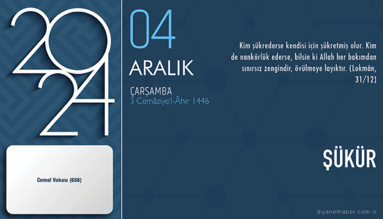Şükür Şükür, derin bir saygıyla nimet sahibinin iyiliğini anmak, ona karşı edep ve saygısını dile getirmektir. Kul, verdiği nimetlerden dolayı Allah’a minnettarlık duyar. Bu duyguyu sözleri ve amelleriyle göstermesi şükürdür. Şükür, her nimeti, Allah’ın razı olacağı şekilde değerlendirmek, maddi ve manevi bütün nimetlerin asıl sahibinin Allah Teâlâ olduğunu idrak etmektir. Kur’an’da şükür, kulluğun gereği olarak değerlendirilmiş, Allah’ın nimetlerine mazhar oldukları hâlde şükretmeyenler kınanmıştır (A‘râf 7/10). Hz. Peygamber de yaptığı ibadetleri Allah’ın verdiği nimetlere bir şükran ifadesi olarak değerlendirmiştir (Buhârî, Teheccüd, 6). Kulun dilinde daim olan şükür, Allah’a gönülden itaat edip günahlardan uzak durmak suretiyle, nimete minnettar olmaktır. En büyük teşekkür Yüce Allah’a itaat edip günah işlemekten uzak durmak suretiyle yapılandır. Şükrün zıddı ise nankörlüktür. Mümin zihnini, kalbini, dilini, bedenini şükür nimetinden mahrum bırakmaz. Ömrünü, şükürle bereketlendirir. — Cemel Vakası (656) Kaynak