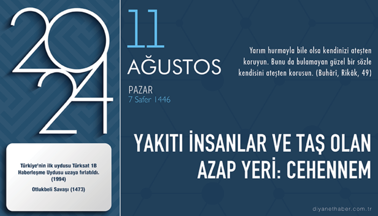 Yakıtı insanlar ve taş olan azap yeri: Cehennem Cehennem, Allah Resûlü’nün getirmiş olduğu hidayeti inkâr edenler ve onun gösterdiği dosdoğru yoldan sapan fasık kimselerin ahiretteki mekânıdır. Bu azgın kimseler, kendilerine gelen apaçık ayetleri dinlemeye bile tahammül etmeyerek küfürde ısrarcı olmaları ve Allah’ın ayetlerini boşa çıkarmaya çalışmalarına karşılık böylesi kötü bir yerde kalmayı hak etmişlerdir. Cehennem, üst üste katlar şeklinde birçok bölümden oluşan, oldukça derin dipsiz bir çukur, etrafı kalın duvarlarla çevrili bir zindandır. Uzaktan bakıldığında kaynaması ve uğuldaması duyulan, yana yana renk değiştirmiş, sonunda siyah ve karanlık bir hâl almış, doymaz bir ateş olmuştur. Bu muazzam ateşin yakıtı insanlar ve taşlardır. Cehennem ehli dünyada işledikleri günahlara karşılık kızgın ateş, kavurucu rüzgâr, yakıcı duman, kaynar su, ateşten elbise, doymak bilmez bir açlık, kötü kokulu yiyecekle azap görür. Günahkâr müminlerin de günahına karşılık ceza göreceği cehenneme düşmemek için salih amellerimizi artırmalıyız. — “Türkiye’nin ilk uydusu Türksat 1B Haberleşme Uydusu uzaya fırlatıldı. (1994) Otlukbeli Savaşı (1473)” Kaynak